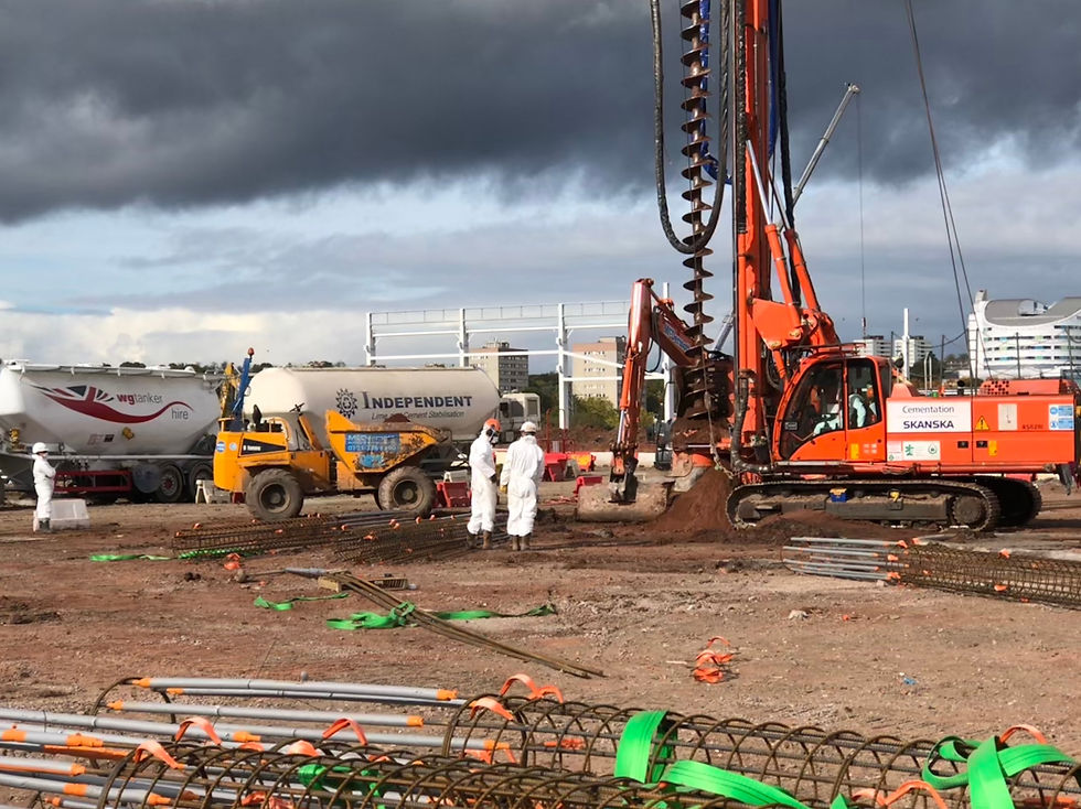 Lansdowne are undertaking the setting-out of the piles for client Cementation Skanska. Three rigs are currently installing the CFA piles. Lansdowne duties include generating pile co-ordinates from design drawings, setting-out, levelling cages and finally producing as-builts and red line drawings.